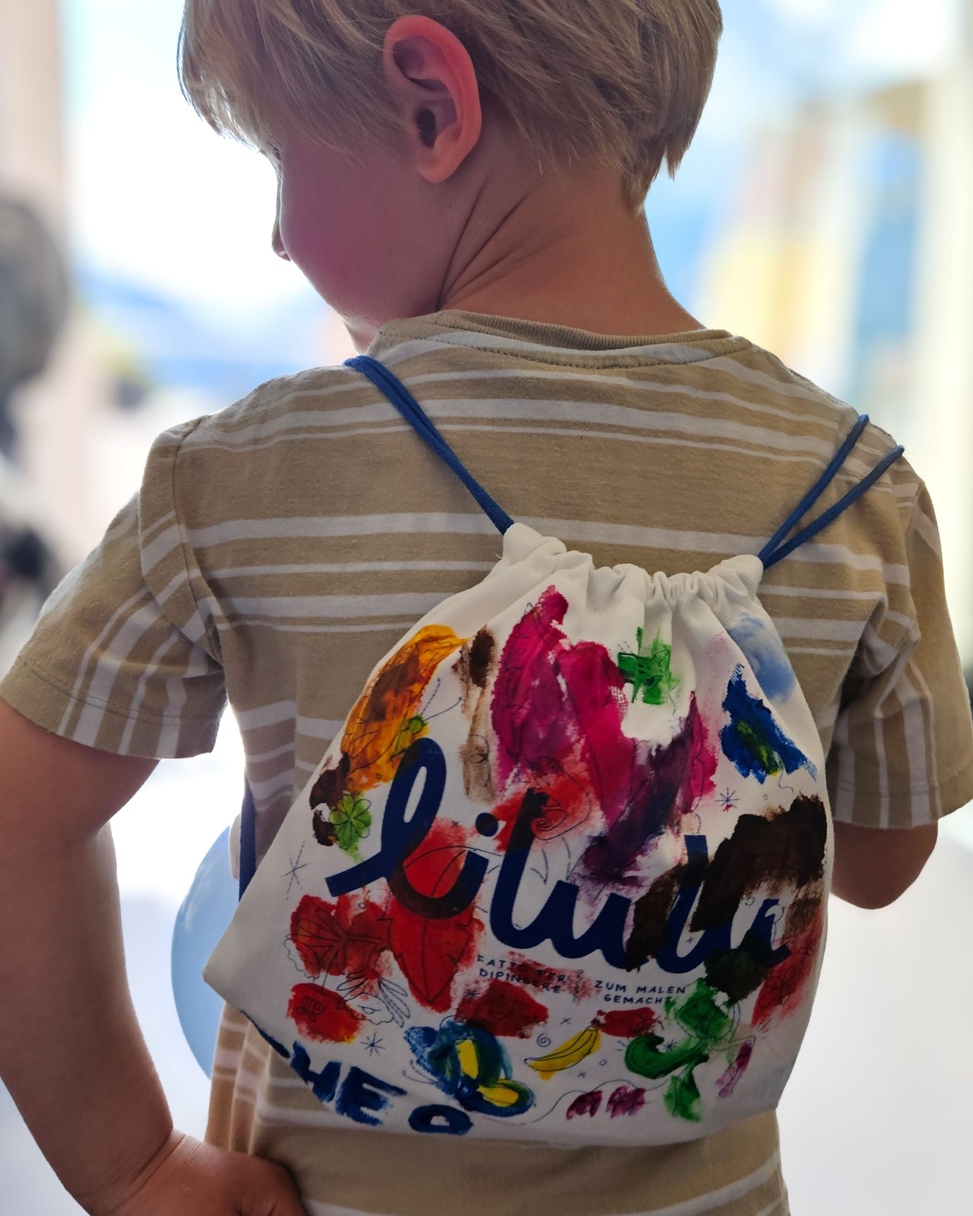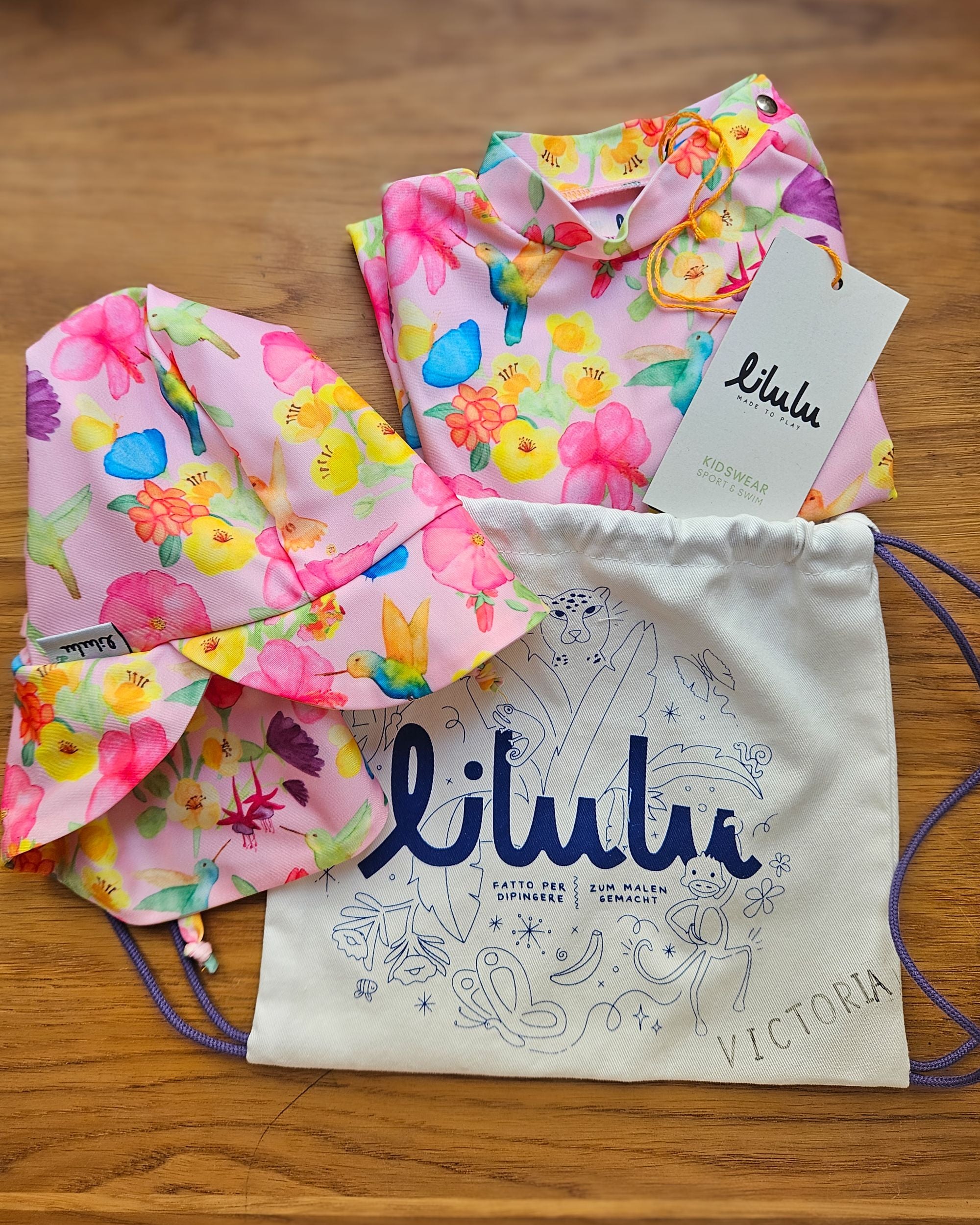 Every Lilulu piece arrives in a fabric backpack made for kids to carry treasures, toys, and adventure essentials. They can color it, personalize it, and make it their own. This way, what holds the garment becomes part of their play, and we avoid disposable packaging in favor of a reusable, waste-reducing solution.